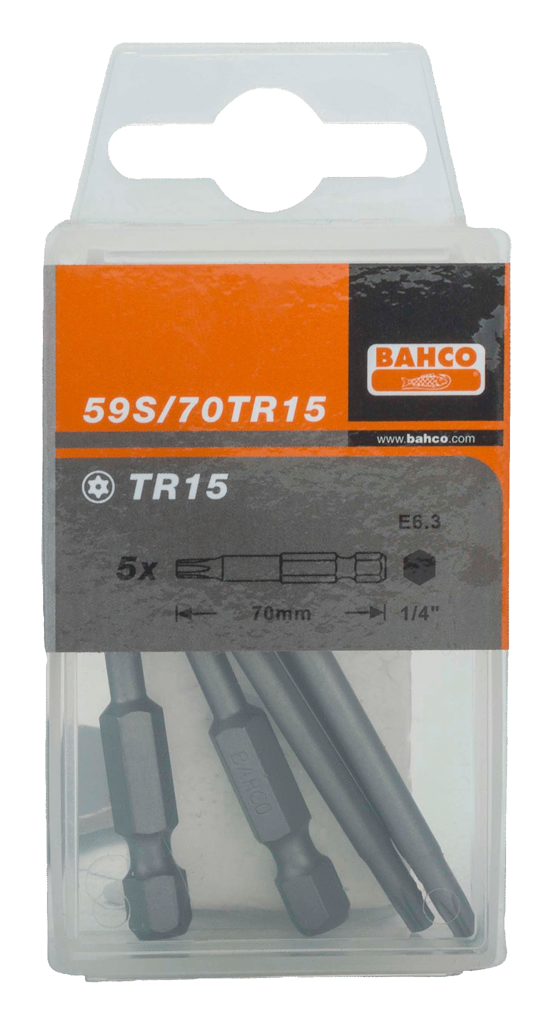 Bit 1/4″ do śrub TORX, z otworem centrującym TR15x70 mm, 5 szt. BAHCO