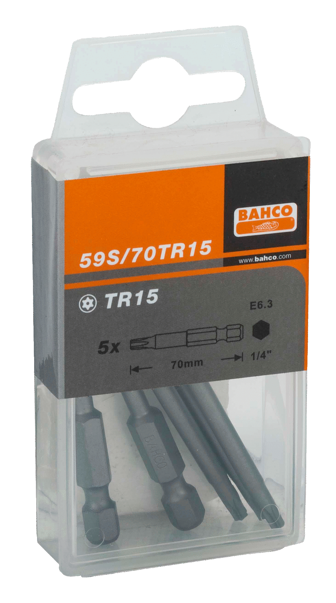 Bit 1/4″ do śrub TORX, z otworem centrującym TR20x70 mm, 5 szt. BAHCO
