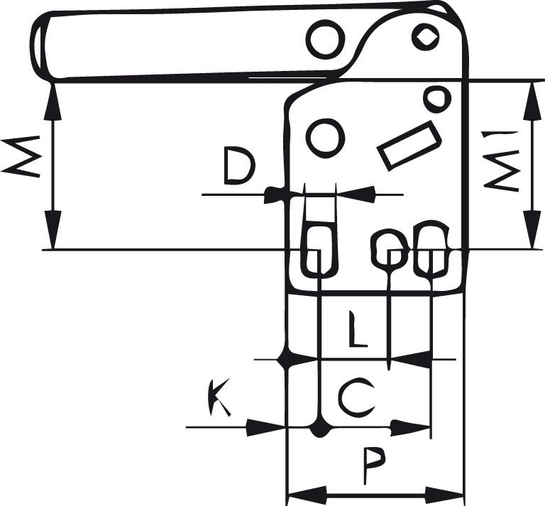 Wykonanie: docisk szybkomocujący, pionowy, z otwartym ramieniem dociskowym i stopą pionową. Ocynkowany i pasywowany. Nity ze stali nierdzewnej poruszają się w tulejach łożyskowych utwardzanych dyfuzyjnie; ze względu na brak miejsca nie dotyczy rozmiaru 1. Punkty łożyskowe smarowane. Ergonomiczny uchwyt odporny na oddziaływanie olejów, z dużą powierzchnią przylegania dłoni, z miękkich komponentów. Bezpieczny element zaciskowy z ochroną palców. Zabezpieczenie przed utratą śruby dociskowej na końcu ramienia dociskowego.