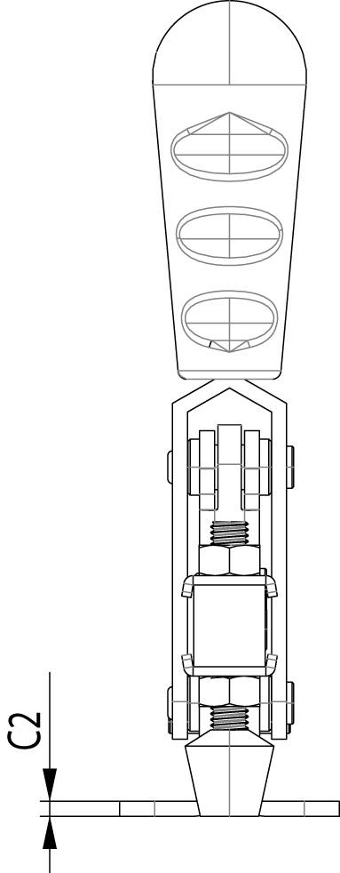 Wykonanie: z odgiętą stopą mocującą, nieprzekręcającymi się tulejami i nitami ze stali szlachetnej. Ocynkowany i pasywowany. Uchwyt ze sztucznego tworzywa z długim ramieniem dociskowym.