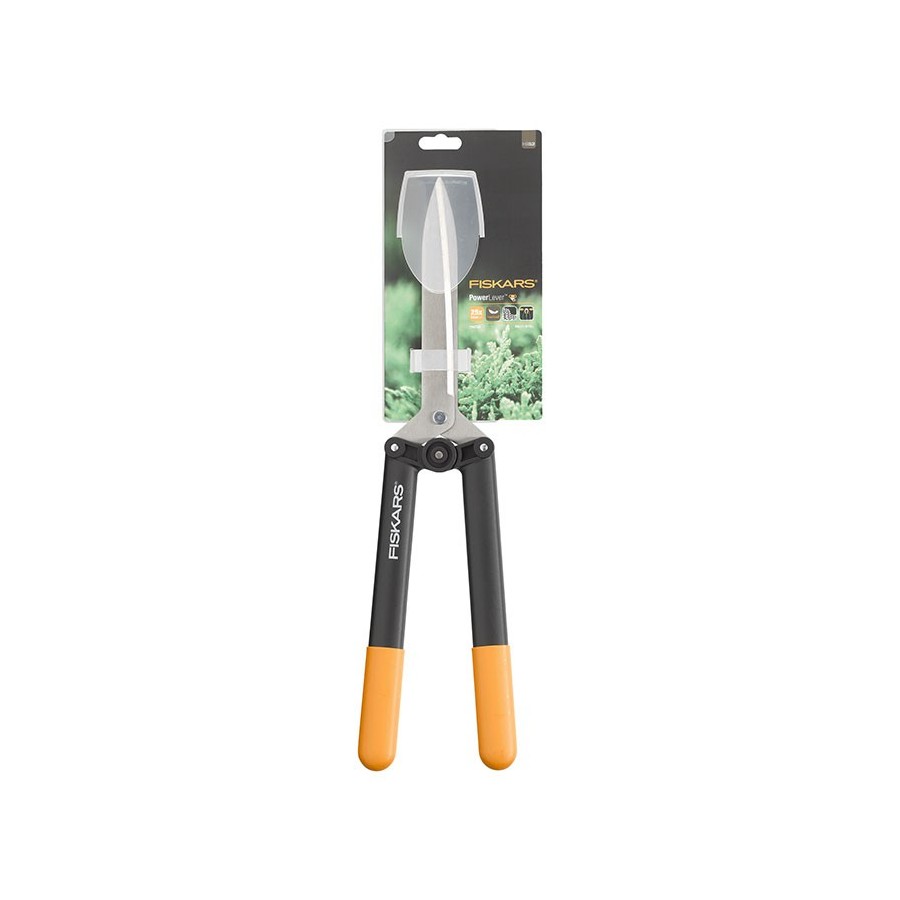 Nożyce do żywopłotu Fiskars wyróżnia innowacyjny system PowerGear™. Rozwiązanie to opiera się na systemie przekładni zębatych, które przenoszą i zwiększają siłę cięcia (2,5:1, 3,5:1). Rączki wszystkich nożyc wykonane są z nowoczesnych tworzyw, które charakteryzuje duża wytrzymałość i niewielki ciężar. Ostrza wykonane są z wysokogatunkowej stali nie rdzewnej, zapewniającej czyste cięcie.