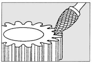 Frez trzpieniowy ze stopów twardych DIN 8032/8033, kształt łukowy ostry SPG, uzębienie 3 PLUS, Rüggeberg