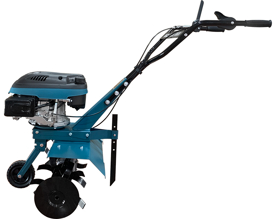 Model wyposażony w koło przeznaczone dla wygodniejszego transportowania, które z łatwością podnosi się podczas pracy glebogryzarki.