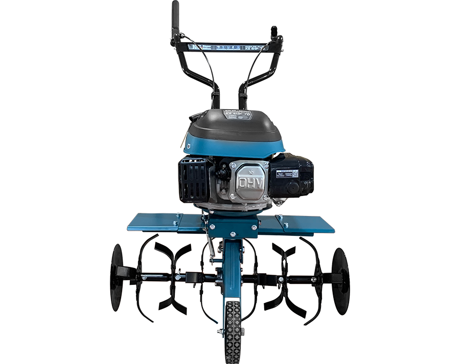 Kompaktowy model glebogryzarek KS 4HP-70 posiada koła transportowe, które pozwalają na łatwe manewrowanie nawet na niewielkich powierzchniach.