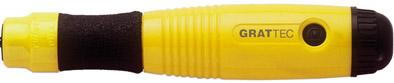 Zastosowanie: Podwójne gniazdo mocujące pozwala na stosowanie zarówno wszystkich ostrzy typu B z chwytem Ø 2,6 mm oraz wszystkich ostrzy typu E z chwytem Ø 3,2 mm. Dzięki podłączeniu końcówki do ukosowania krawędzi możliwe jest gratowanie i ukosowanie krawędzi materiałów i powierzchni okrągłych o średnicy do 18 mm.