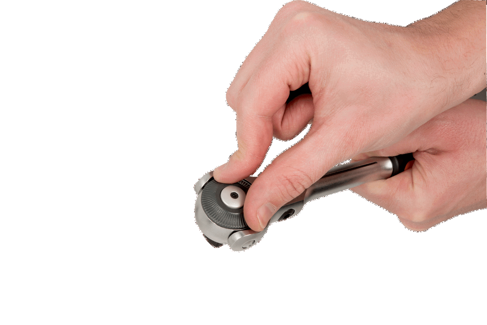 - Przełącznik kierunku na głowicy jest dostępny prawie pod każdym kątem