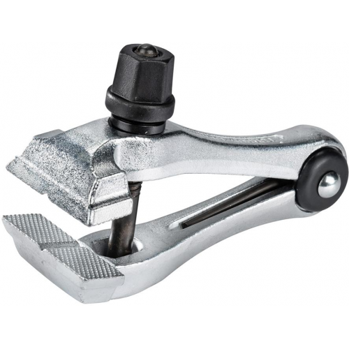 Wykonanie: ramiona z bardzo wytrzymałej, chromowo-stopowej stali narzędziowej, z wymiennym wrzecionem z gwintem trapezowym, bezpieczne prowadzenie przegubu i zabezpieczona przed zagubieniem, zwijana sprężyna rozporowa. Szczęki z pryzmatycznym wcięciem do mocowania części okrągłych, z dużą rozpiętością szczęk i nakrętką sześciokątną.