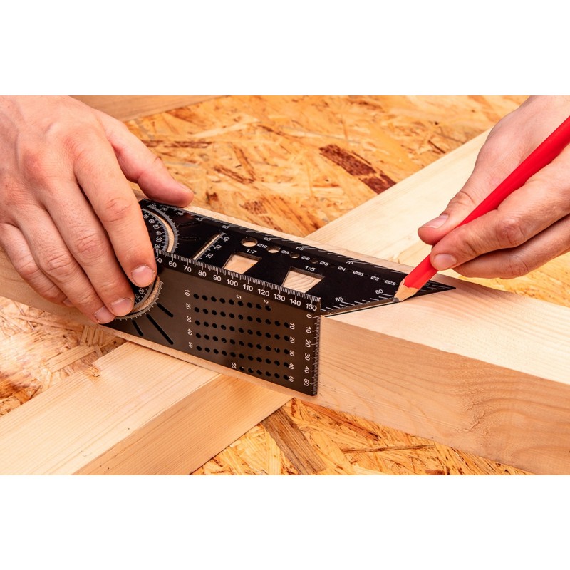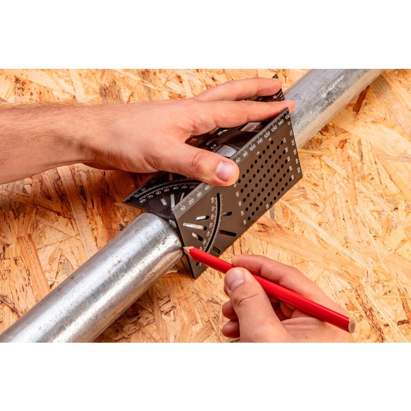 Idealny do dokładnego przenoszenia kątów ukośnych na dwie przylegające do siebie strony obrabianego materiału.
