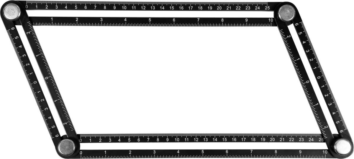 Kątownik nastawny do przenoszenia wymiarów – metalowy. Wykonany ze stabilnych płaskowników aluminiowych . Na powierzchni naniesiona trwale skala metryczna i calowa długość ramion 250 mm x 120 mm, blokowanie za pomocą metalowych pokręteł. Do odwzorowywania kształtów w pracach stolarskich , glazurniczych, dekoratorskich itp.