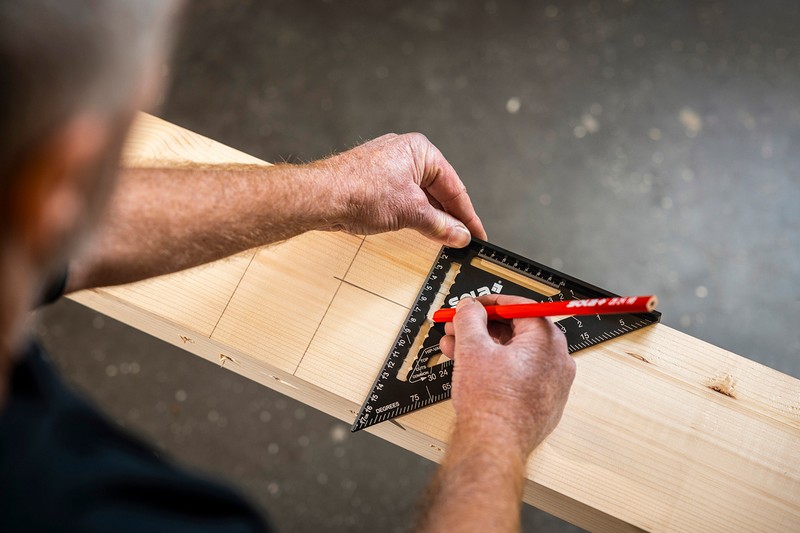 Szybkie oznaczanie cięć ukośnych na zwykłych krokwiach i krokwiach biodrowych