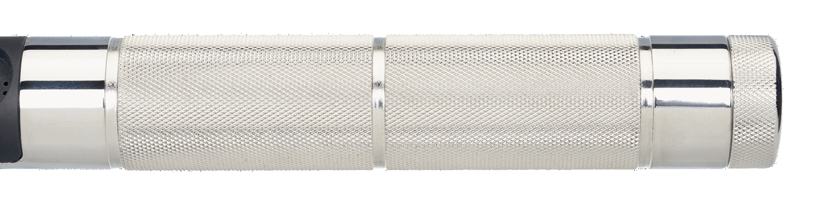 - Metalowa rękojeść z komorą na baterie z lewym gwintem (baterie alkaliczne AA w zestawie)