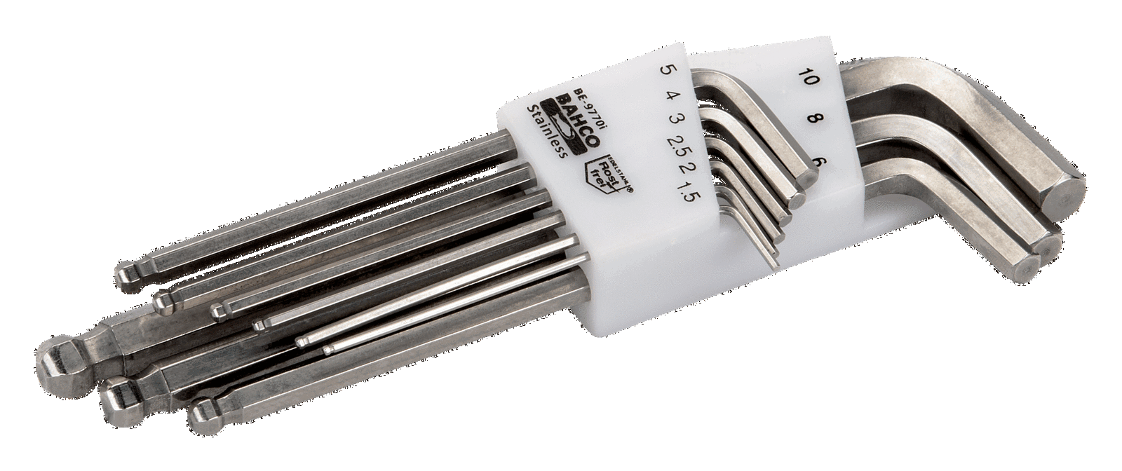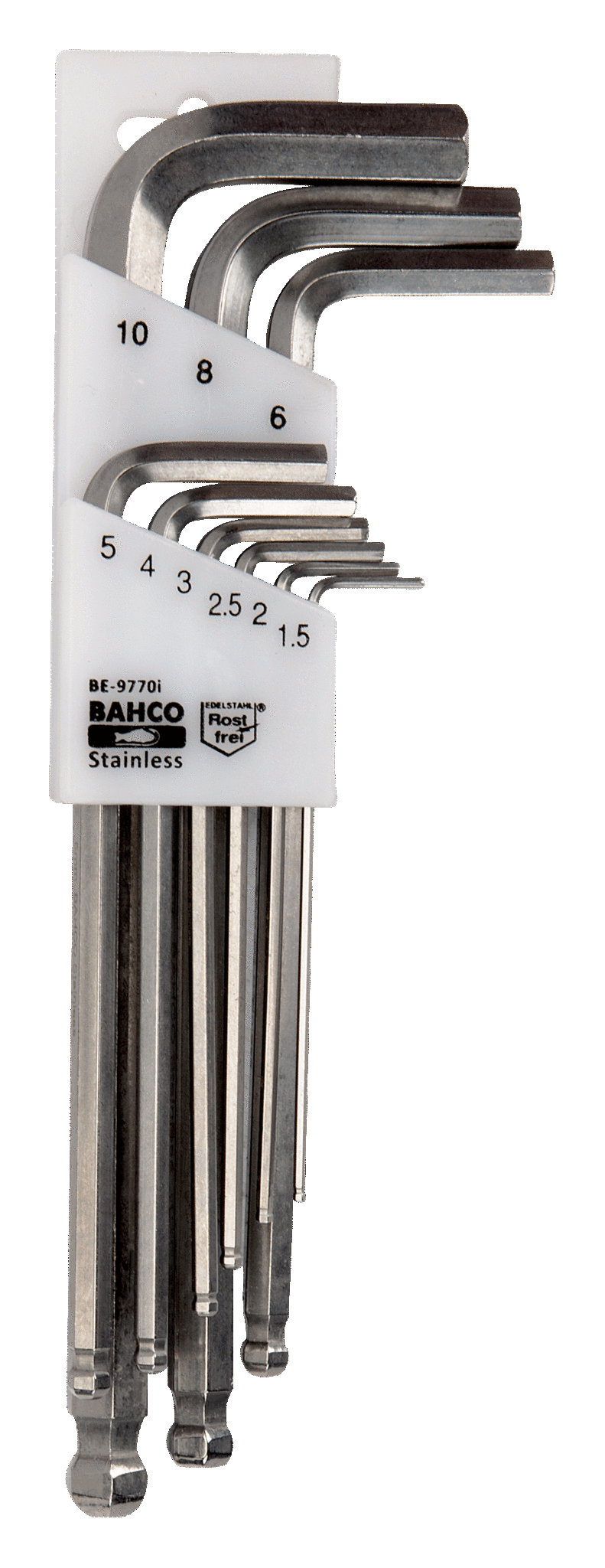 Klucz imbusowy z kulką, długi, zestaw 9 szt., metryczny, stal nierdzewna, rozmiary 1.5-10 mm BAHCO