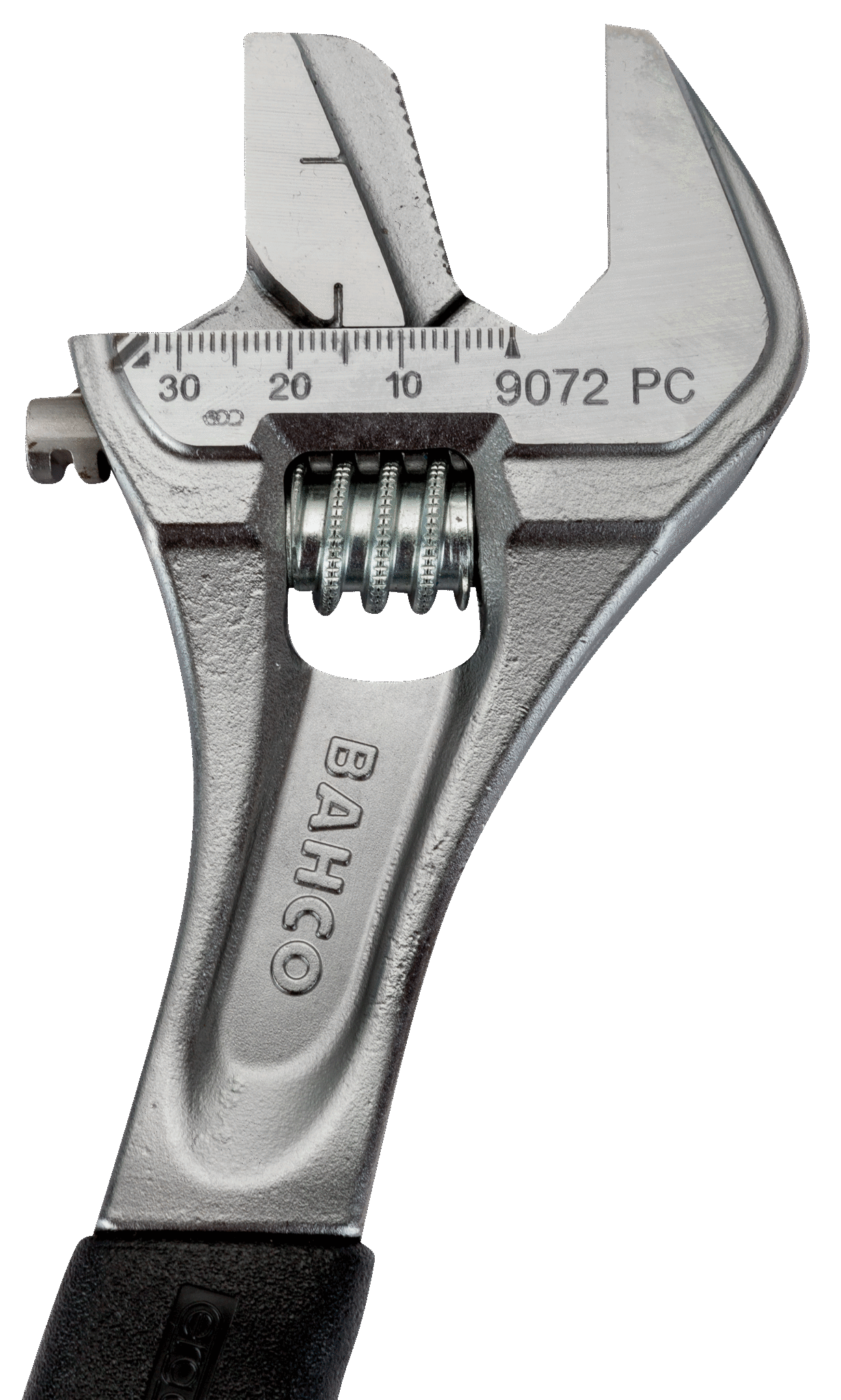 - Poprzez zdjęcie i obrócenie odwracalnej szczęki, klucz nastawny może być wymieniony na klucz do rur