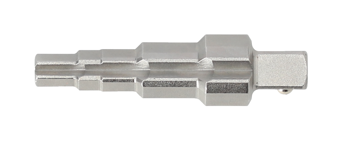 - Klucz o rozmiarach od małych do dużych stopniowanych wzdłuż jego dlugości, pasuje do rożnych sześciokątnych zaworów