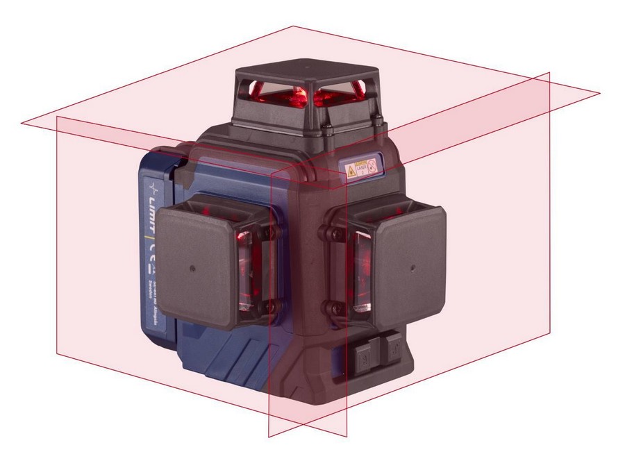 Laser krzyżowy wielopromieniowy, rzutujący w zakresie 360° trzy bardzo jasne linie w kolorze czerwonym.