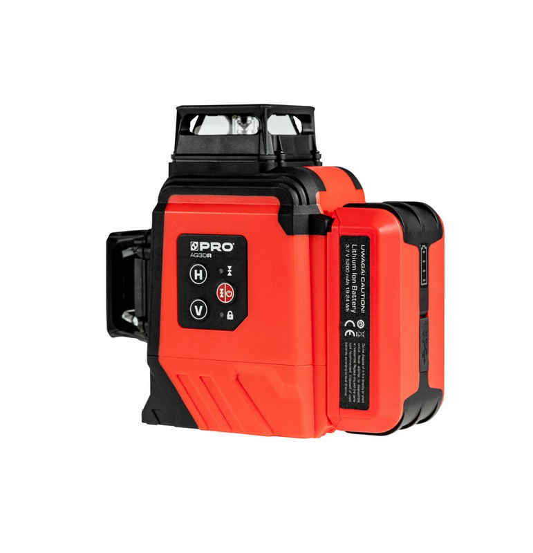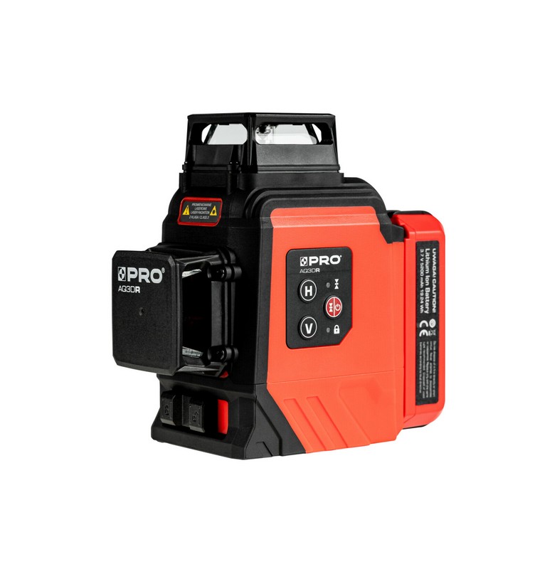 laser wieloliniowy PRO-AQ3DR generuje trzy płaszczyzny 360°, jedną poziomą oraz dwie płaszczyzny pionowe przecinające się pod kątem 90°