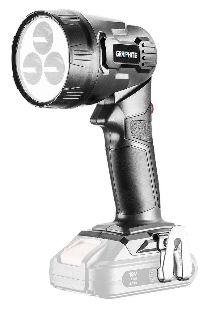 Latarka GRAPHITE, współpracująca z akumulatorami 18V GRAPHITE Energy+.