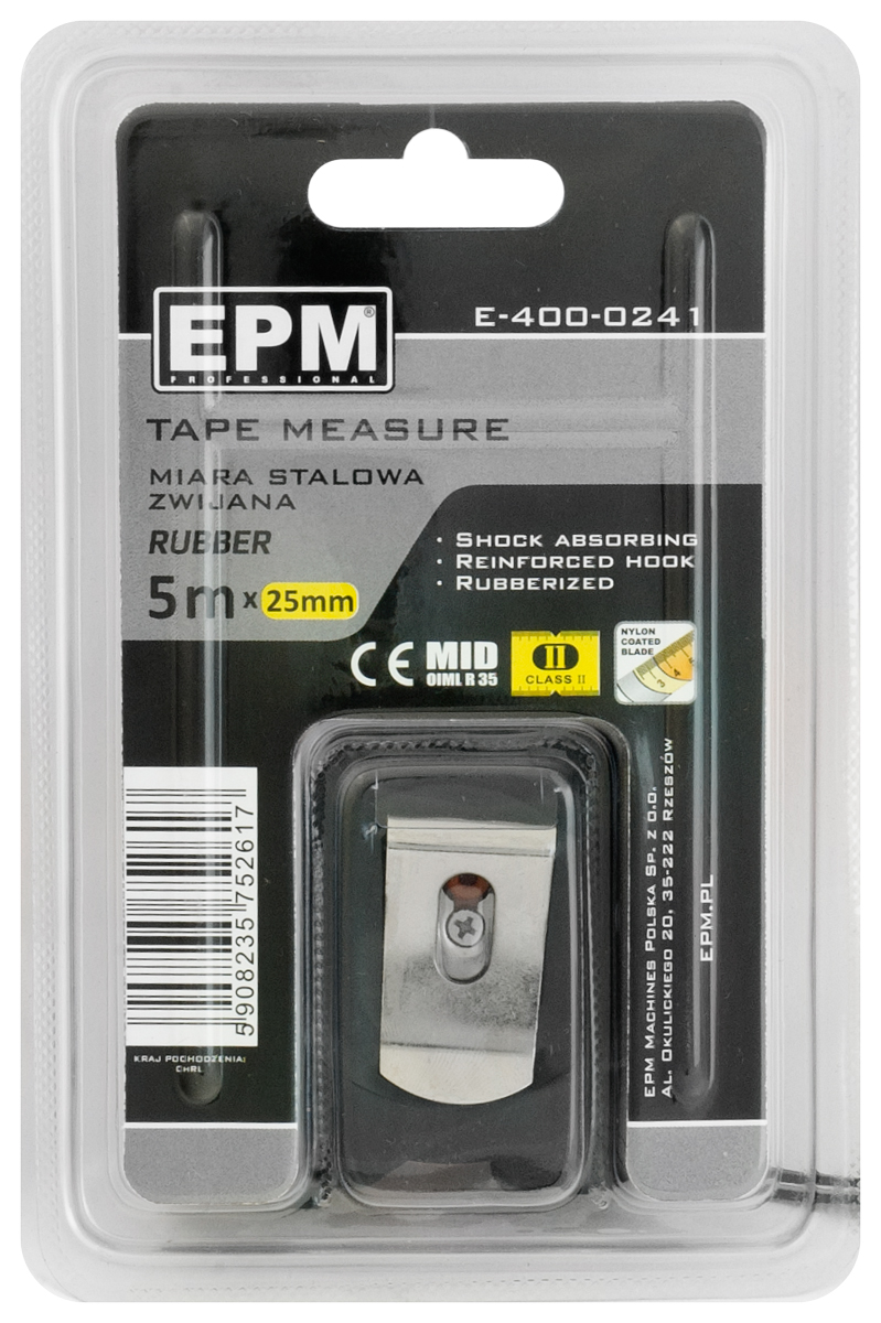 Nylonowe pokrycie stalowej taśmy mierniczej chroni ją przed ścieraniem i korozją, dodatkowy amortyzator chroni taśmę przed wstrząsami podczas zwijania.