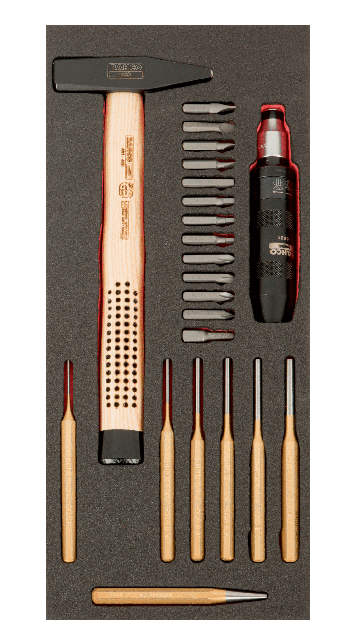 Młotek ślusarski z wkładką z pianki i zestawem punktaków i końcówek udarowych – 23 szt BAHCO