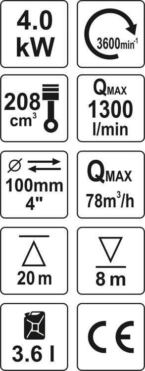 MOTOPOMPA DO WODY SPALINOWA 4” 5,9HP 96M3/H