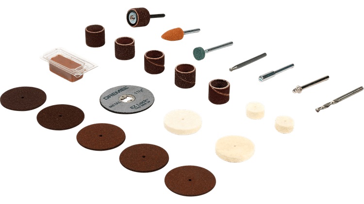 – 25 wysokiej jakości akcesoriów Dremel, w tym zestaw EZ SpeedClic
