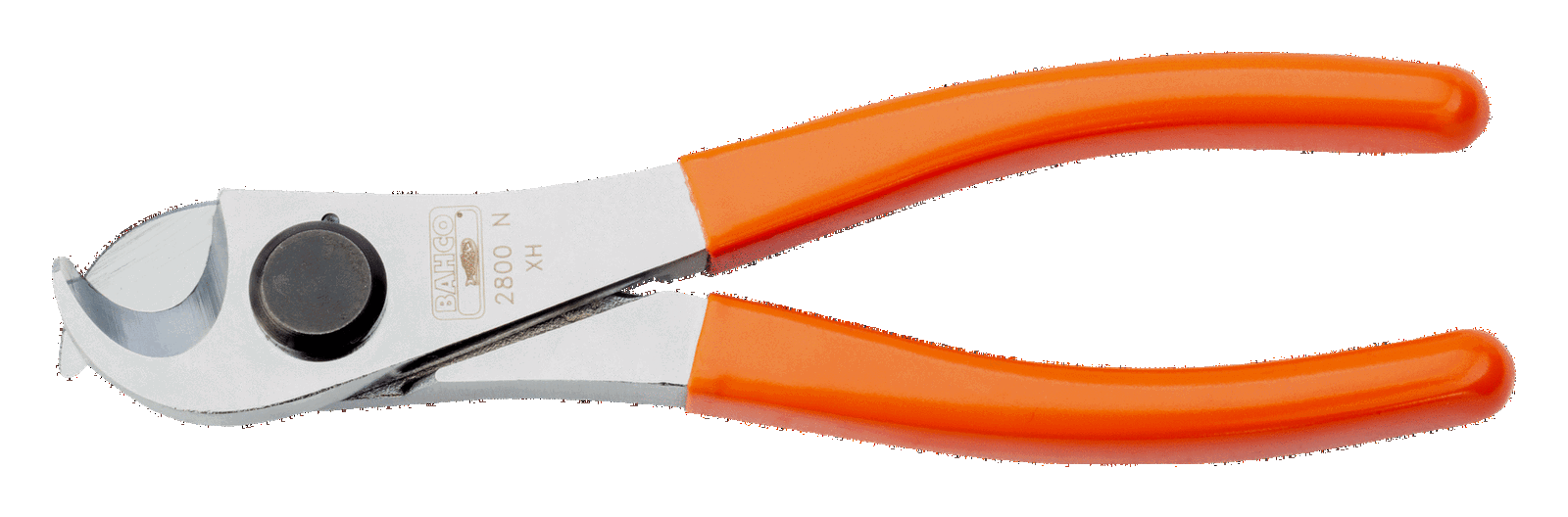 - Nożyce do kabli.. Zastosowanie: Do cięcia przewodów ekranowanych i wielożyłowych.. Uwaga: NIE NADAJE SIĘ do cięcia kabli monolitycznych.. Kształt: Ze sprężyną powrotną.. Wykończenie: Chromowo-niklowa, polerowana powłoka. . Materiał: VANADIUM-EXTRA. Rękojeści pokryte pomarańczowym, transparentnym tworzywem PCV. . Zakres cięcia: Drut miedziany w izolacji.