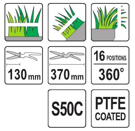 NOŻYCE DO TRAWY OBROTOWE 370MM 16-POZYCYJNE OSTRZA TEFLON