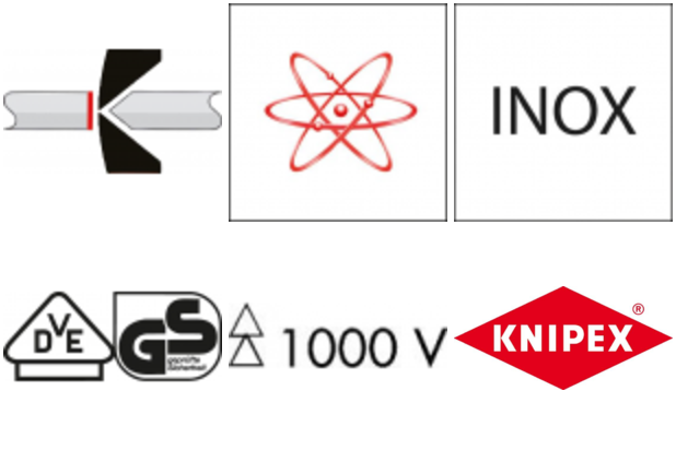 Wykonanie: DIN ISO 9654. Ze stali nierdzewnej. Złącze pracujące bez luzu z nitem ze stali nierdzewnej i sprężyną rozwierającą. Precyzyjnie szlifowane krawędzie tnące (54 HRC). Rękojeści z wielokomponentowymi osłonkami z tworzywa sztucznego, izolowane do 1000 V według IEC 60900, DIN EN 60900, VDE 0682/cz. 201.. Zastosowanie: do cięcia równo z powierzchnią w trudno dostępnych miejscach w instalacjach elektrycznych i mechanice precyzyjnej.