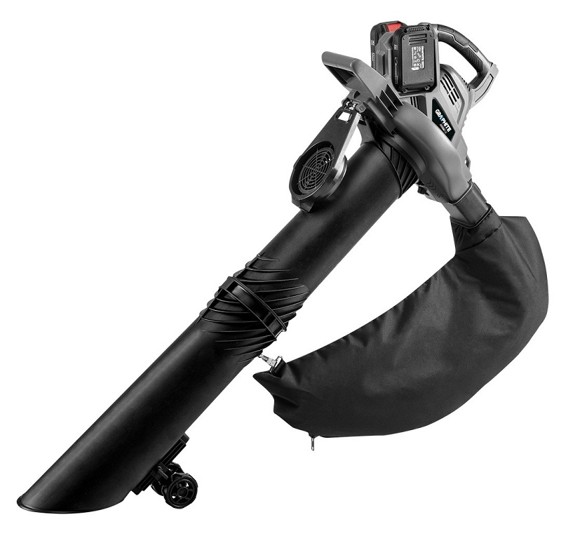 Dmuchawa/Odkurzacz do liści GRAPHITE (nr ref. 58G036), współpracująca z akumulatorami 18V Li-Ion GRAPHITE Energy+ to praktyczne i funkcjonalne urządzenie do utrzymaniu czystości i pozbycia się nadmiaru liści. Urządzenie posiada dwie funkcje: dmuchawy o prędkości przepływu powietrza 200 km/h oraz odkurzacza, który jednocześnie rozdrabnia wciągnięte odpady. Produkt wyposażony jest w materiałowy worek o pojemności 35 l. Urządzenie wyposażone jest w pasek na ramię, dzięki któremu praca jest wygodniejsza.