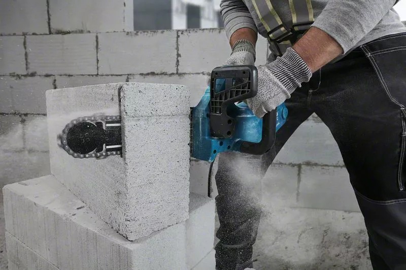 Elektronarzędzie jest przeznaczone do cięcia bloczków z betonu komórkowego o różnej wielkości.