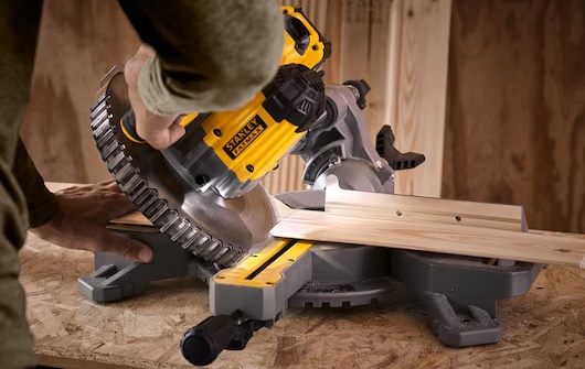 Mocny silnik o prędkości obrotowej 3.800 obr/min umożliwia łatwe cięcie tarcicy o wymiarach 2X, twardego drewna, listew przypodłogowych i listew ozdobnych.