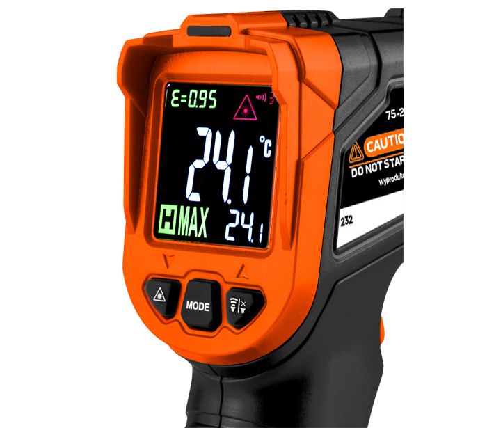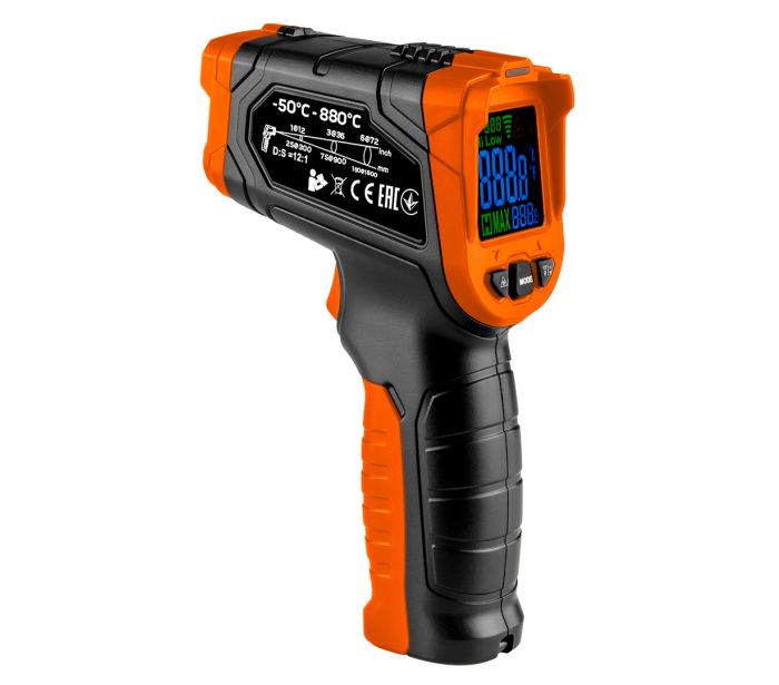 Pirometr, przyrząd do szacowania temperatury (C-50~880, F-58~1616) 75-276 NEO to narzędzie przeznaczone do precyzyjnych pomiarów temperatury (z dokładnością +/- 1,5% + 1°C) zimnych i gorących powierzchni. Jego zakres wynosi od -50°C ~ 880°C. Pirometr jako jeden z nielicznych dostępnych na rynku charakteryzuje się regulacją współczynnika emisyjności od 0,1 do 1,00.