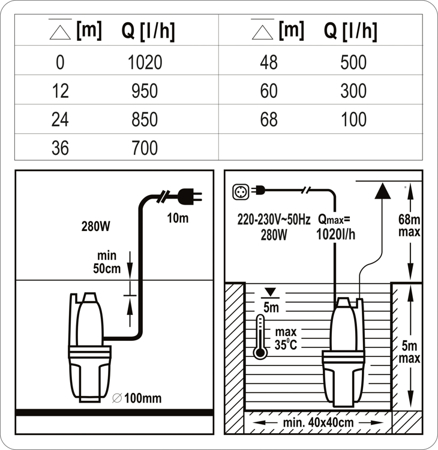 POMPA MEMBRANOWA – GŁĘBINOWA ZATAPIALNA 280W 79943