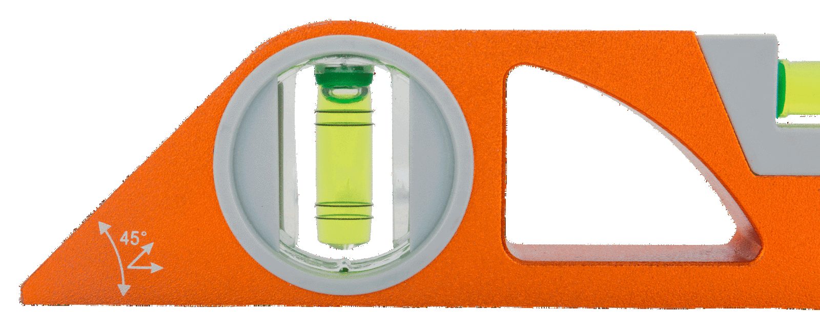 - Otwory w ramie ułatwiają chwytanie poziomicy
