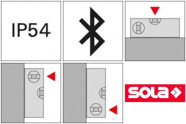 Wykonanie: z poliamidu wzmocnionego włóknem szklanym, z silnym magnesem neodymowym. Moduł Solatronic do pomiaru nachylenia. Wyświetlanie wartości w stopniach, procentach, mm/m i in. Stopień ochrony: IP54. Zintegrowany interfejs Bluetooth®. Dokładność pomiaru modułu elektronicznego dla 0° i 90°: 0,05°, w pozostałych przypadkach 0,2°.