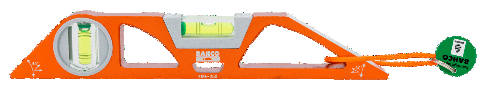 - Poziomica o dłg. 250 mm posiada ścięte pod katem 45° i 30° boki