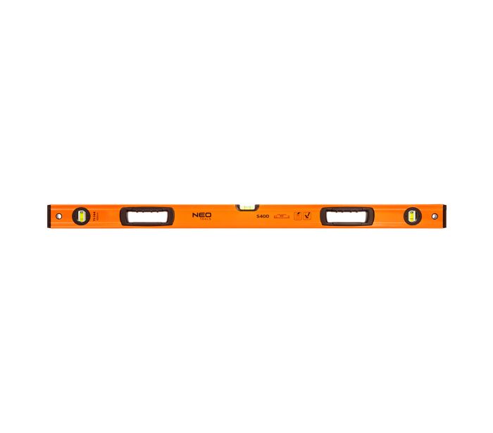 Poziomnica aluminiowa S 400, 3 libelle, 2 uchwyty, 100 cm 71-144 NEO TOOLS to profesjonalna poziomnica wyposażona w trzy libelle z systemem łatwego odczytu.