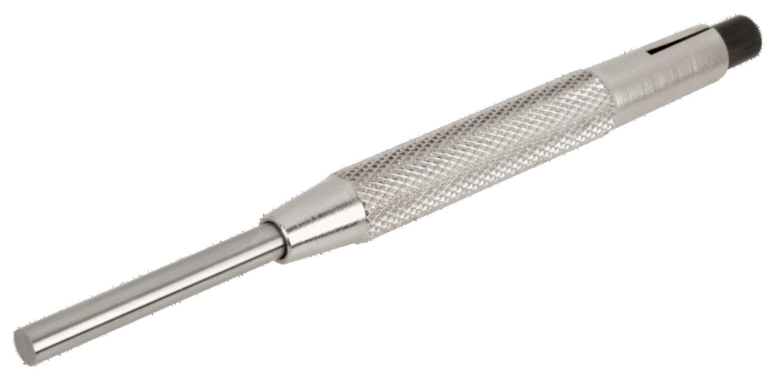 - Końcówka przebijaka jest prowadzony przez koszulkę, poprzez jej wciśnięcie, dzięki czemu unika się możliwości złamania końcówki