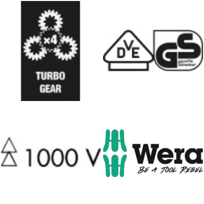 Wykonanie: przełączalna, przekładnia planetarna zintegrowana w uchwycie zwiększa prędkość roboczą. Rękojeść turbo zwiększa czterokrotnie prędkość wkręcania, w sposób całkowicie mechanicznie, maksymalny moment obrotowy 14 N-m. Podczas precyzyjnej regulacji i końcowego dokręcenia śruby zalecane jest odłączenie wspomagania mechanicznego. 3-komponentowa rękojeść Kraftform Plus ze zintegrowanymi miękkimi strefami zapewniającymi lepszy chwyt, z zabezpieczeniem przed staczaniem się narzędzia z miejsca pracy, izolowana do 1000 V według IEC 60900, DIN EN 60900.