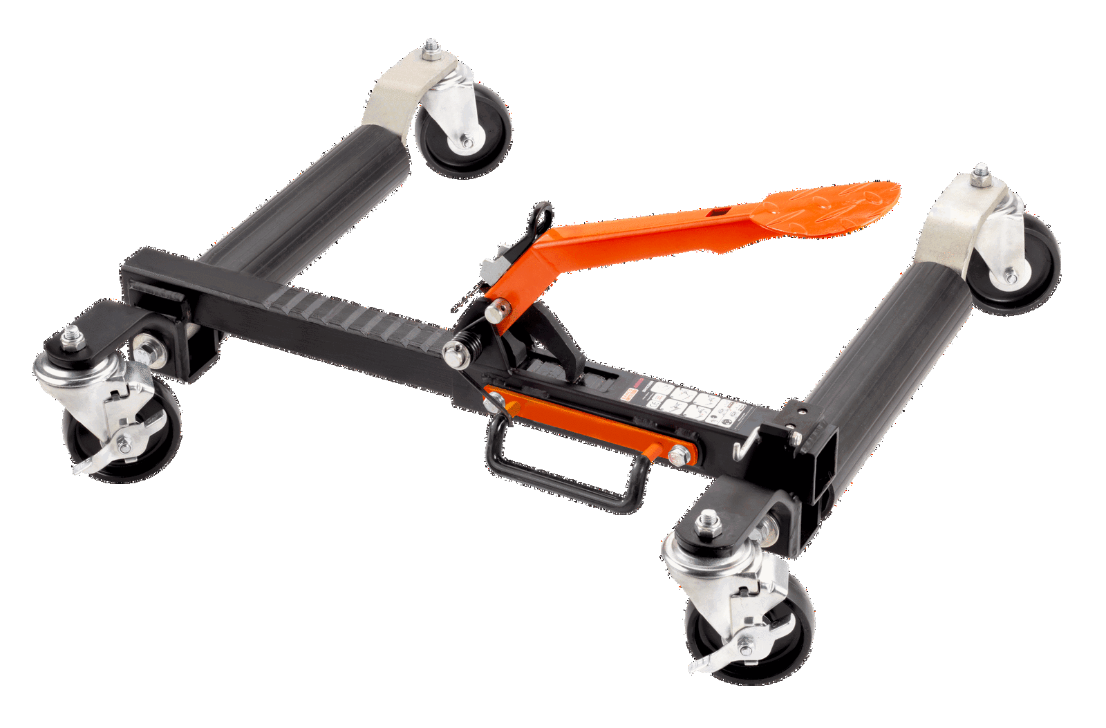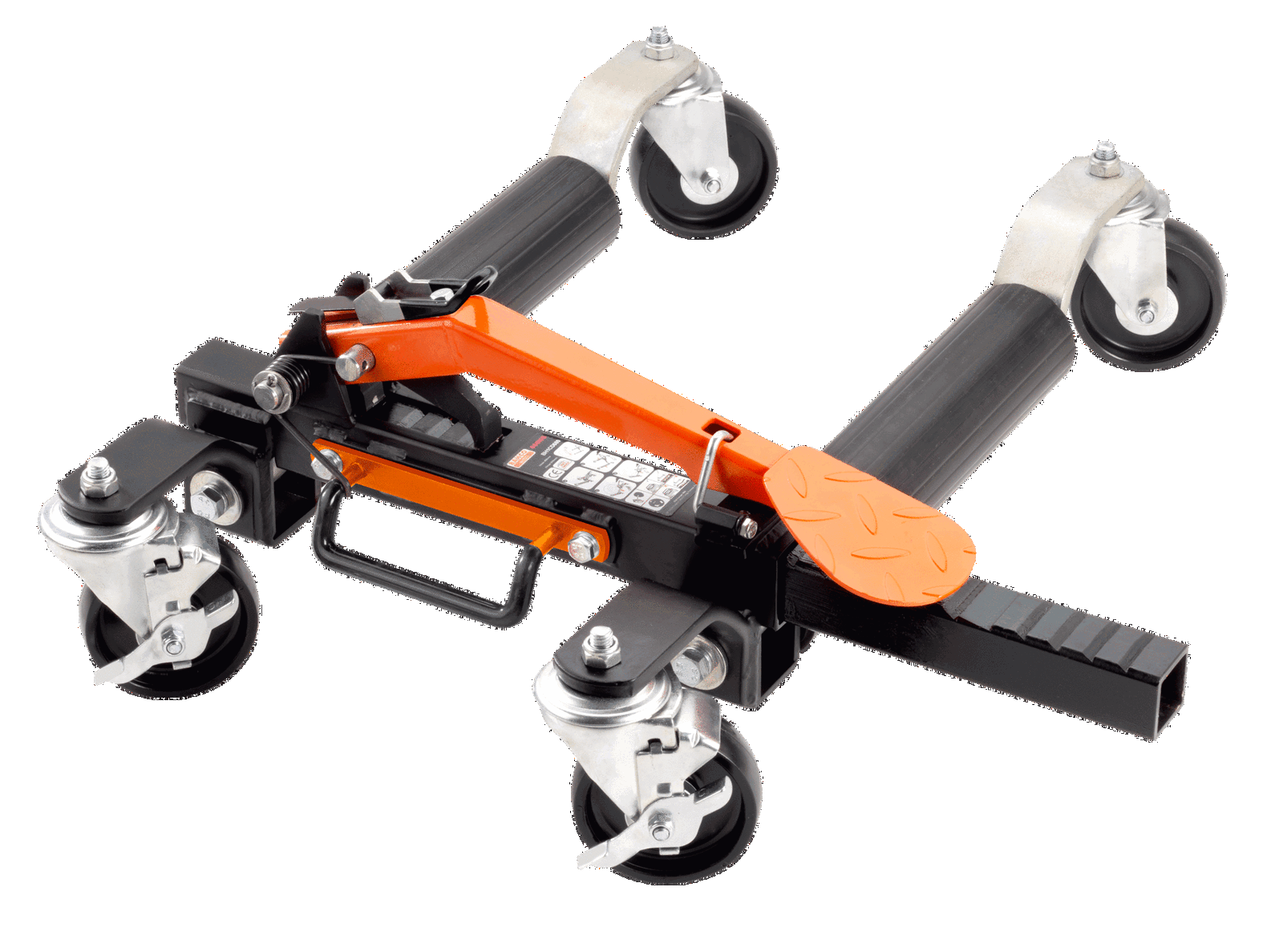 - Poprzez naciśnięcie na pedał system zapadkowy ściska kierownicę pojazdu i podnosi go w ciągu kilku sekund.