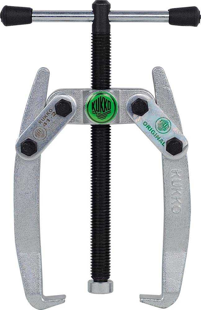 Wykonanie: Z bardzo wytrzymałymi, samoczynnie centrującymi się, obrotowymi ramionami do ściągacza ze stali narzędziowej z domieszką chromu. Z automatyczną regulacją chwytaków oraz ulepszanym cieplnie i specjalnie powlekanym wrzecionem dociskowym o bardzo dobrych właściwościach ślizgowych. Wytrzymały, uniwersalny model.
