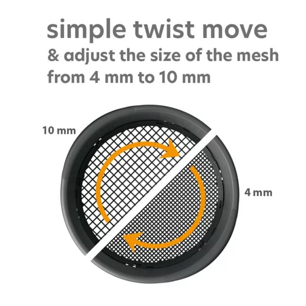 Solidne narzędzie ogrodowe, idealne do filtrowania kamieni i gruzu z gleby. Sitko obracające się o 180 stopni pozwala na regulację wielkości oczka z dużego na mały, w zależności od indywidualnych potrzeb każdego użytkownika.