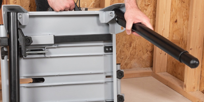 Wysuwane w lewą i prawą stronę ramiona umożliwiające podparcie przecinanego przedmiotu zapewniają lepsze mocowanie elementu, a tym samym przeprowadzenie procesu cięcia w bezpieczny sposób.