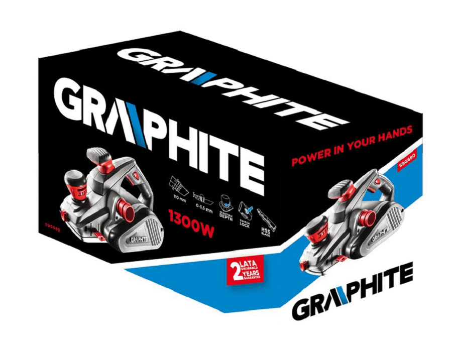 Specjalistyczny strug elektryczny GRAPHITE o dużej mocy 1300 W, przeznaczony do ciężkich prac ciesielskich i stolarskich.