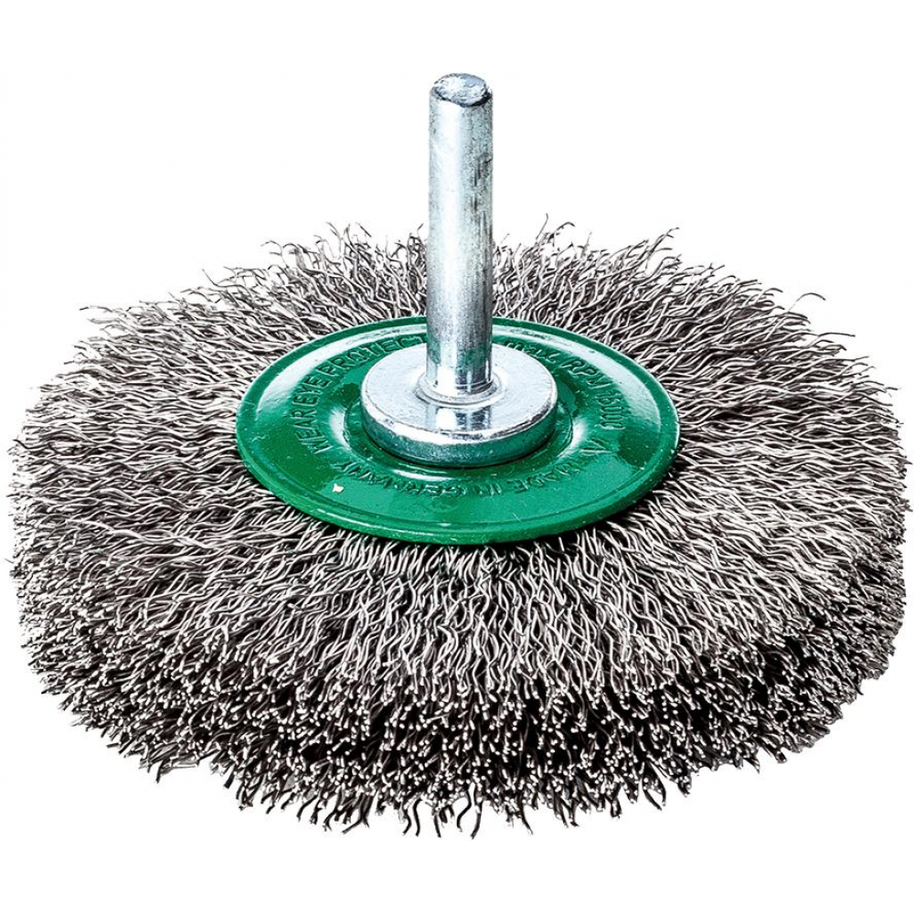 Szczotka tarczowa trzpieniowa, drut ze stali nierdzewnej (1.4310), falisty