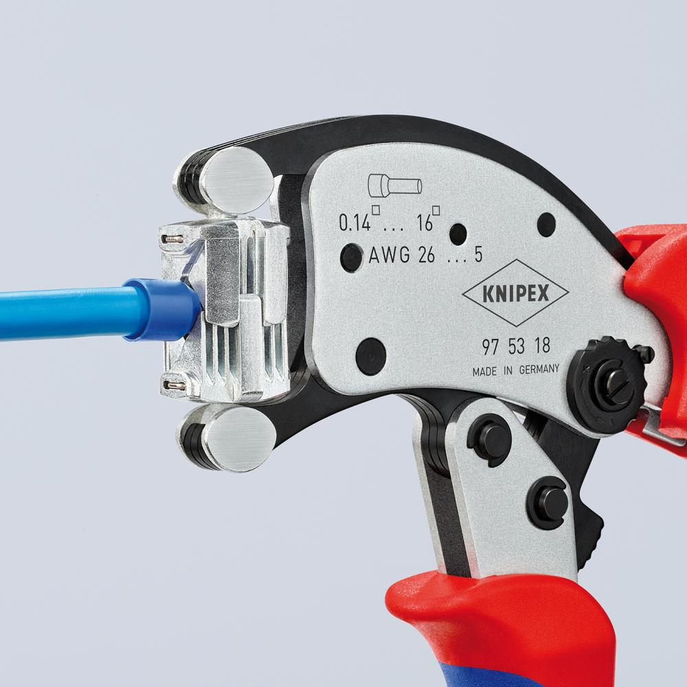 Szczypce do zaciskania tulejek kablowych Twistor 0,14-16mm, 97 53 18, KNIPEX