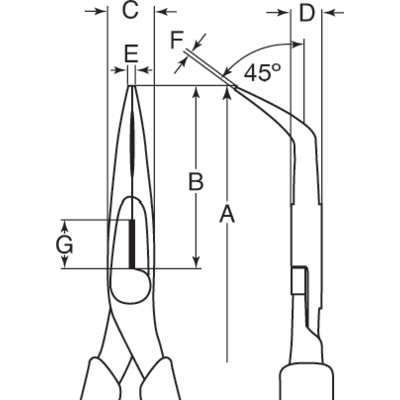 - Szczypce z wygiętymi o 45° końcówkami półokrągłymi zaprojektowane zgodnie z ideą i koncepcją narzędzi ERGO™