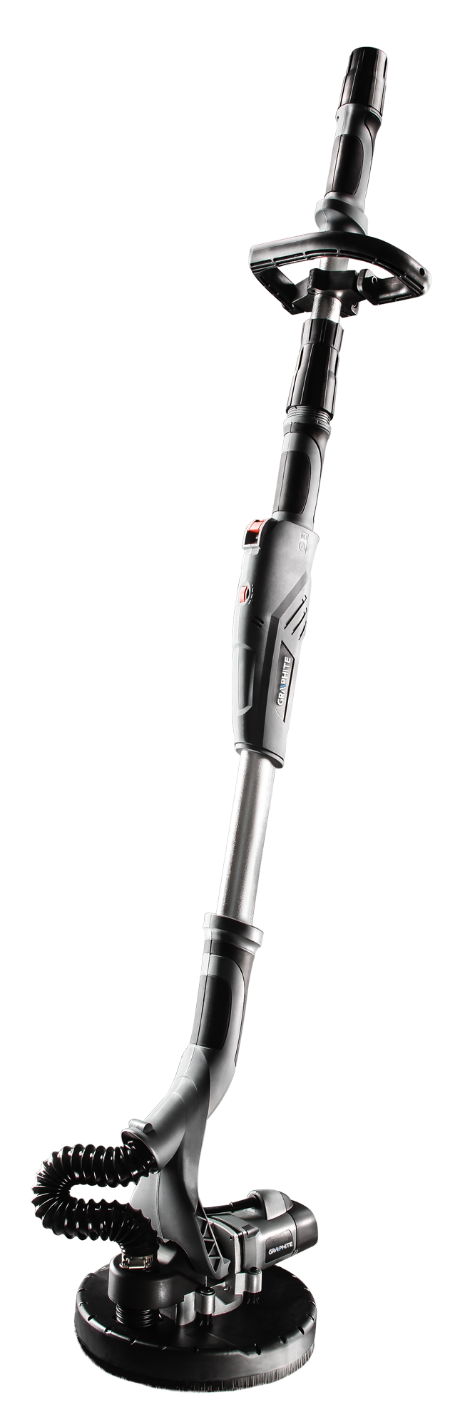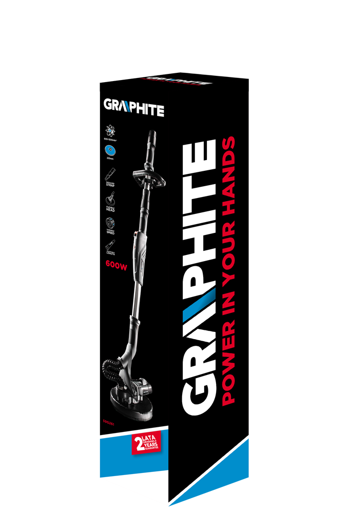 Wysokiej klasy szlifierka teleskopowa GRAPHITE o mocy 600 W, przeznaczona do obróbki powierzchni gipsowych.