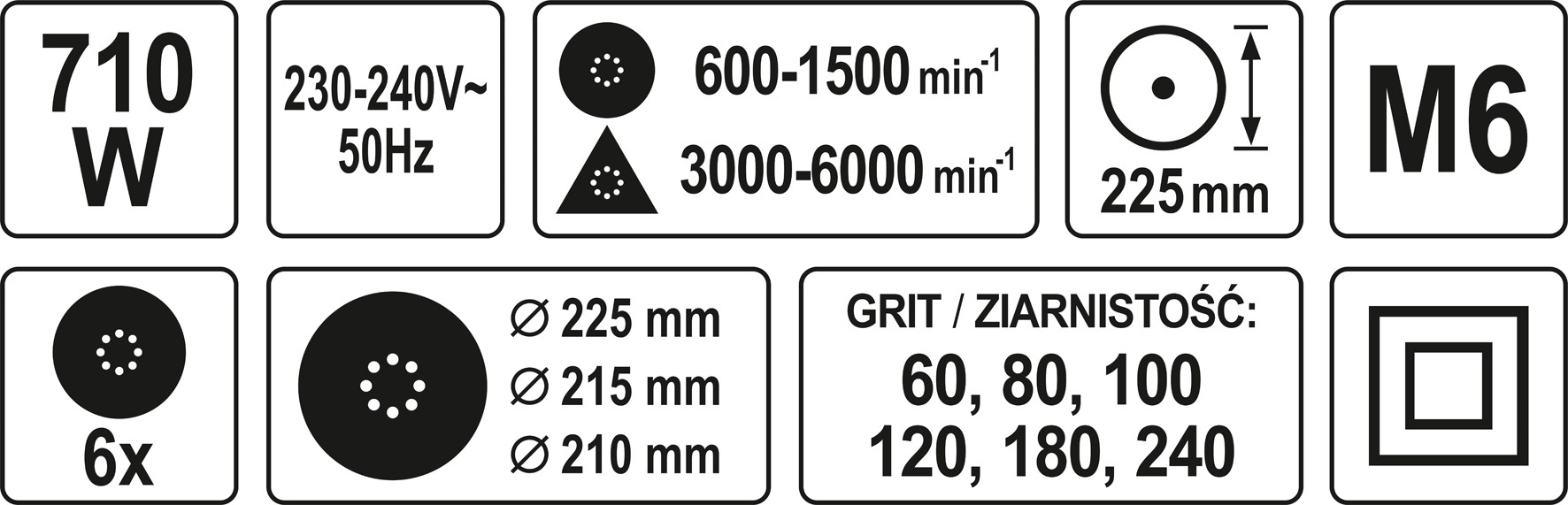 płynna regulacja obrotów w zakresie 600–1500 obr./min (głowica okrągła) oraz 3000–6000 obr./min (głowica trójkątna)
