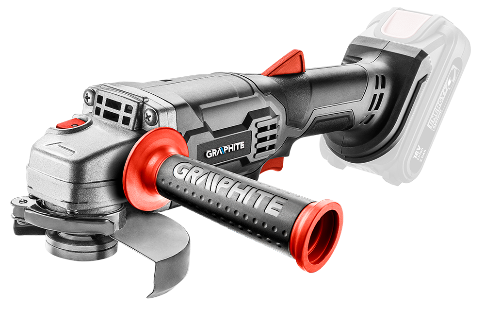 Szlifierka kątowa GRAPHITE, współpracująca z akumulatorami 18V Li-Ion GRAPHITE Energy+.